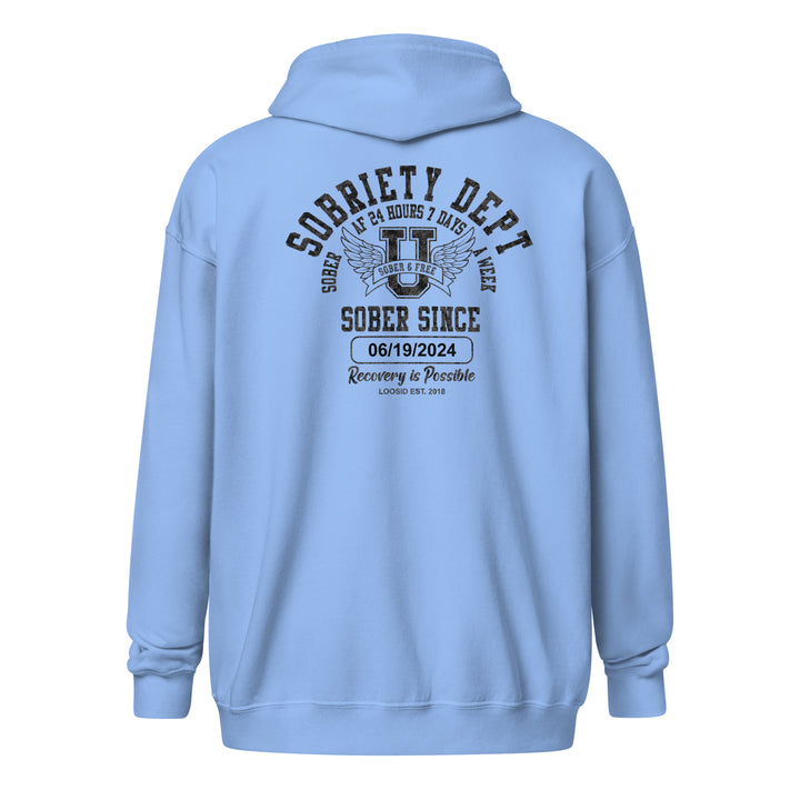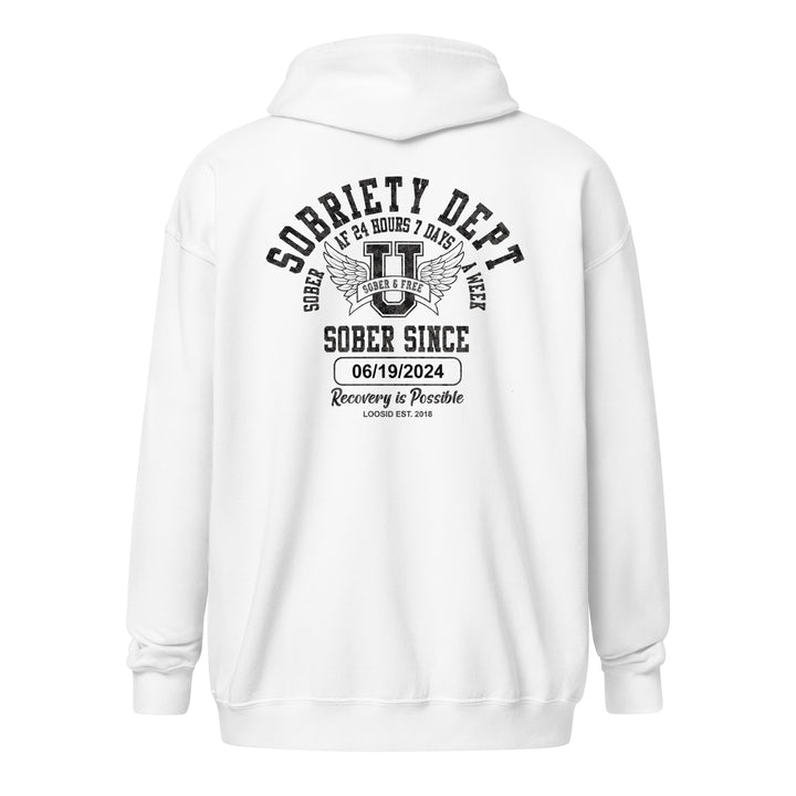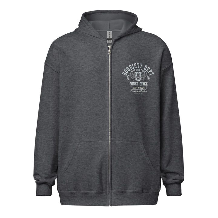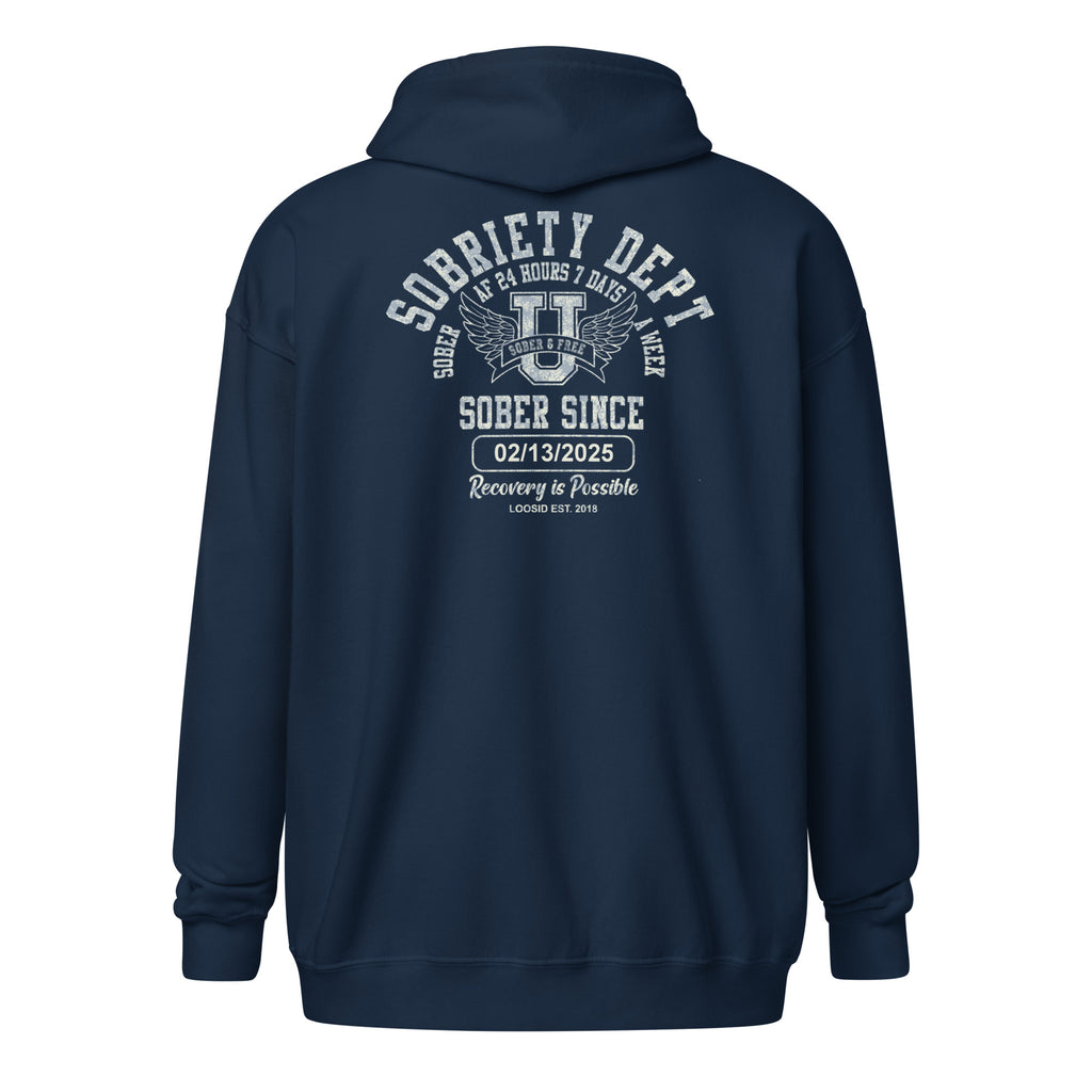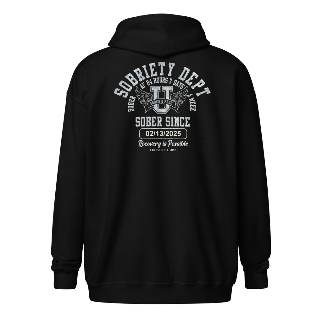 Sobriety Dept Unisex Zip Hoodie Front and Back Print Hoodie – Sober AF 24/7 with Custom Sobriety Date