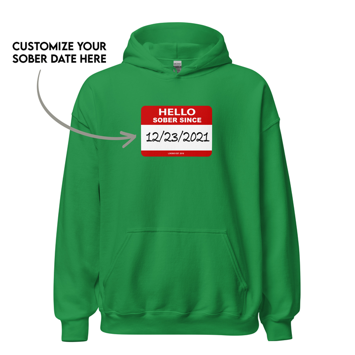Unisex Hello Sober Since Hoodie w/ Personalized Sobriety Date