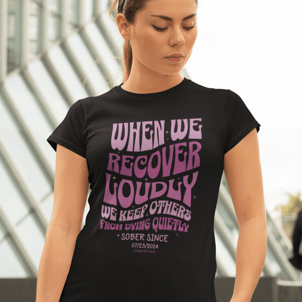 When we recover Loudly T-shirt with Custom Sobriety Date