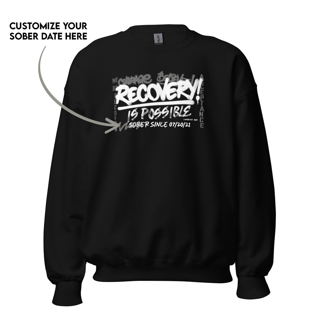 Showcase your sobriety milestone proudly with the Loosid Women's Recovery Is Possible Sweatshirt with your personalized sobriety date. This personalized Loosid Sweatshirt lets you showcase your sobriety milestone proudly and uniquely. Made with premium, ultra-soft fabric, this hoodie is designed for comfort and durability, whether you're lounging at home or out with friends.